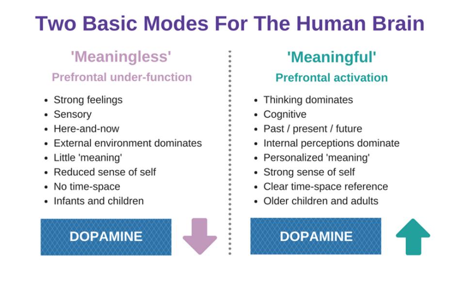 And to boost meaning we turn to a Tribal Identity rich in purpose. This helps us to feel powerful together, understand where we fit in and how to belong to the tribe, gives us shared beliefs, and increases the potency and power of our individual identity (because we belong to such a cool tribe).